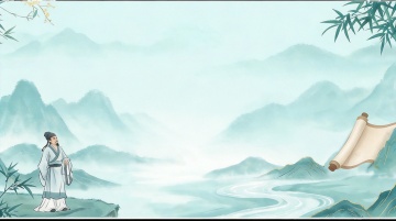 具有宣纸纹理质感的国风渐变背景,由上部淡雅的米白色向中部柔和的青绿色自然过渡,融入写意风格的浅淡云纹和远山轮廓,整体画面采用大面积留白设计,营造出空灵悠远的东方意境,色彩层次细腻,笔触温润,构图简洁大方,充满古典雅致的韵味。