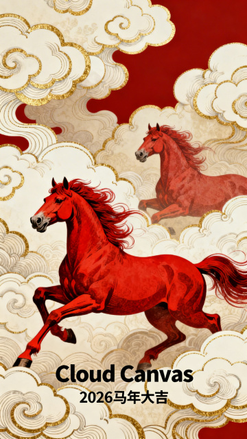 国潮风工笔绘红马腾云,鎏金岩彩勾勒祥云,复古中式喜庆贺2026马年大吉。