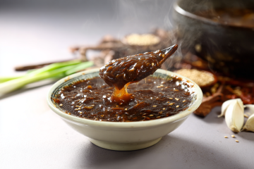 高质感餐饮美食摄影,深色背景突出食物色彩,特写沸腾的红色汤底火锅,蒸汽缭绕,筷子夹起鲜嫩肉片,周围摆放多种配菜如蔬菜、丸子、菌菇,食材新鲜饱满,光影对比强烈,高光凸显汤汁光泽与肉质纹理,暖色调营造热烈诱人氛围,不同角度展现火锅餐桌的丰盛场景,细节丰富,构图聚焦食物主体,具有强烈的食欲感和视觉冲击力。