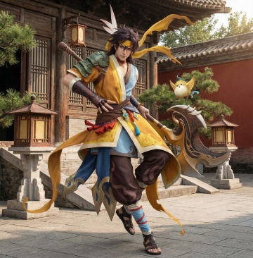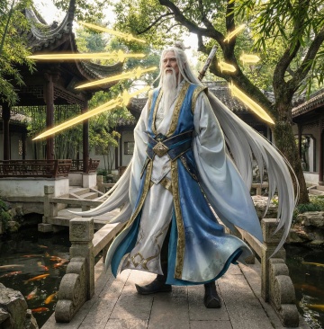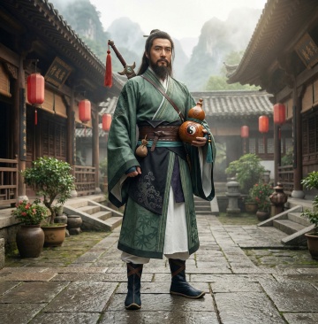 古典中式插画风,水墨山水背景,人物手持折扇,尽显雅致韵味。