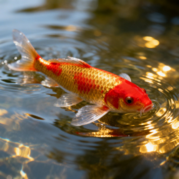 超写实风格水下场景,阳光从水面穿透形成明亮的光束,照亮水中大量姿态各异、游动的锦鲤,鱼鳞细节清晰可见,水底铺满圆润光滑的鹅卵石,水面有波浪起伏形成的光斑和倒影,整体呈现梦幻而生动的氛围,锦鲤色彩改为深邃的靛蓝色与银色渐变,搭配少量紫色点缀,保持原有光影效果和构图布局,色彩和谐统一,画面富有层次感和动态美。
