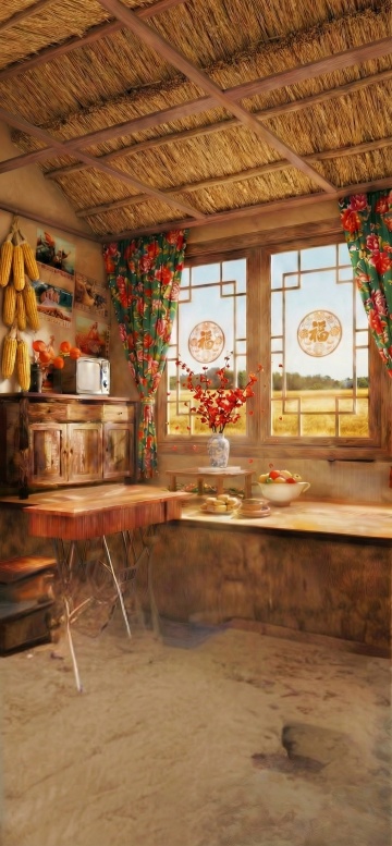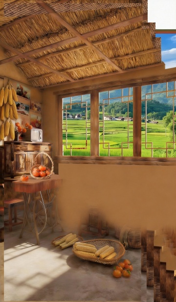 微缩艺术风中式窑洞,毛发生长质感与粘土肌理交融,质朴乡村生活场景,秋日丰收气息扑面而来。