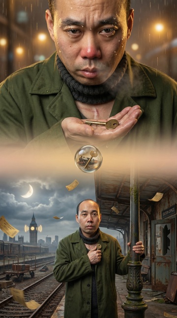 复古胶片风与双重曝光技法交织,光影流动中展现神秘叙事。超现实拼贴构建雨夜车站梦境,油画质感渲染时光错位,钥匙悬浮于水晶球内,暗藏未解之谜。