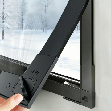 一张现代风格的室内窗户特写照片,采用高清晰度3D渲染技术,光线明亮柔和,以自然光为主,从窗外照射进来,营造出通透、干净的氛围。窗框材质为深灰色金属,表面光滑带有细微的哑光质感,搭配一个金色的金属把手,位于窗框右侧中间位置。窗外是城市景观,有高楼大厦、绿树和街道,但窗户本身的构造为全新设计的样式——[请在此处插入您希望的全新窗户构造描述,例如:上下推拉式双层玻璃窗,带有横向分隔条和内置百叶帘;或左右对开式拱形玻璃窗,边缘有精致的雕花装饰;或不规则多边形全景落地窗,无明显分隔但有隐藏式边框]。室内墙体为纯白色,窗台下是浅色的洗手台一角,整体画面构图平衡,色彩以黑白灰为主色调,辅以窗外的自然绿色和建筑色彩,视觉层级清晰,窗户作为主体被突出展示,细节丰富,真实感强,符合现代家居设计的审美和展示需求。