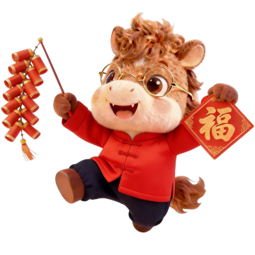 萌趣小马戴狮头,手持红灯笼,融合国潮与剪纸元素,卡通拟人设计,喜庆插画风,传递新春祝福。