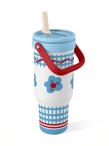 奶油色水壶搭配蓝白波点与格纹,扁平风与轻拟物结合,点缀心形挂饰,清新甜美,柔软舒适,节日氛围感十足。