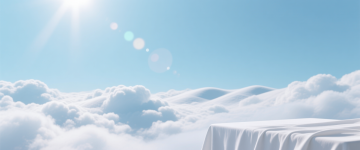 一个位于画面正中央的圆形展台,展台呈现柔和的奶油白色,表面光滑细腻,底部边缘有一圈微微内收的弧度,周围环绕着蓬松轻盈的淡蓝色云朵,云朵形态饱满、边缘柔和,如同棉花糖般质感,背景是清澈的浅蓝色天空,点缀着几缕白色云丝,整体光线明亮柔和,光源来自画面上方偏右位置,给云朵和展台表面带来自然的高光和淡淡的阴影,营造出宁静、梦幻、纯净的氛围,画面整体色调清新淡雅,具有高饱和度的柔和色彩过渡和3D渲染的细腻质感。