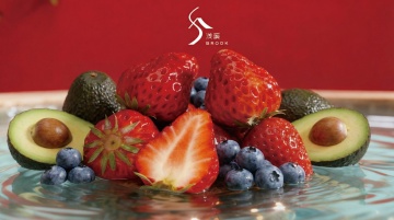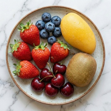纯白色背景上,六个水果元素规整排布成系列素材集合,每个水果都以高度写实的摄影风格呈现,具有清晰的纹理细节、自然的光影过渡和高饱和度的色彩。左侧从上到下依次为:半个牛油果,果核完整,表面光滑的绿色果皮带有细密凸起,切开的果肉呈现淡黄绿色,一颗金黄色的蜂蜜滴落其上,蜂蜜具有透明的光泽和粘稠的质感;一个完整的蓝莓,深蓝色的表皮带有自然的果粉,顶部有细小的果蒂,球体饱满且富有弹性。右侧从上到下依次为:一个被切开的橙子,橙皮呈现鲜艳的橙黄色,带有明显的凹凸纹理,果肉瓣清晰可见,颗粒饱满,汁水欲滴;一个草莓,鲜红色的果实表面布满黄色的籽粒,顶部绿色的叶子呈现锯齿状,果实底部微微内凹;一个猕猴桃,被切成两半,棕色的果皮上覆盖着细密的绒毛,绿色的果肉中分布着黑色的籽粒,截面光滑;一个柠檬,一半被切开,黄色的果皮光滑且带有油点,果肉呈现淡黄色,白色的筋络清晰可见。所有水果元素保持统一的光照方向,阴影自然柔和,整体构图平衡对称,每个水果都占据相似的空间大小,共同营造出清新、健康的视觉氛围,具有强烈的设计感和信息传达效率,适合作为健康食品或饮品的宣传素材。