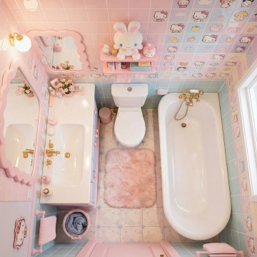 俯视角构图,清晨的北欧风格厨房转角处,阳光透过百叶窗在原木色中岛台表面投下精密的光栅图案,白色哑光橱柜与浅灰色水磨石墙面形成优雅过渡,台面上并排放置着藤编餐篮(内置新鲜法棍与彩色餐巾)、铜制量杯组、半切的牛油果与散落的蓝莓,壁挂式黄铜轨道灯垂下三盏磨砂玻璃罩吊灯,下方是悬挂的手工陶瓷餐盘与榉木砧板,窗台摆放着垂吊的佛珠吊兰与复古搪瓷水壶,整体色调为奶油白、燕麦色与原木棕的温柔交响,光线带有晨雾般的朦胧质感,细节处可见木质纹理与陶瓷冰裂纹理的自然肌理。