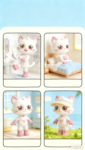 软3D风卡通猫咪,可爱感十足,大眼萌态,适合儿童节主题设计。