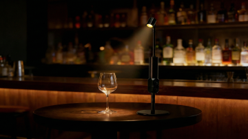 温暖怀旧的餐饮空间背景,木质桌面纹理清晰,柔和暖黄色调灯光从黑色金属支架上的灯泡洒落,营造出温馨舒适的氛围,背景为模糊的砖墙与木质结构,整体光影层次丰富,色调统一,适合作为餐厅、咖啡馆或酒吧的场景展示,突出自然质朴的质感与宁静惬意的用餐环境。