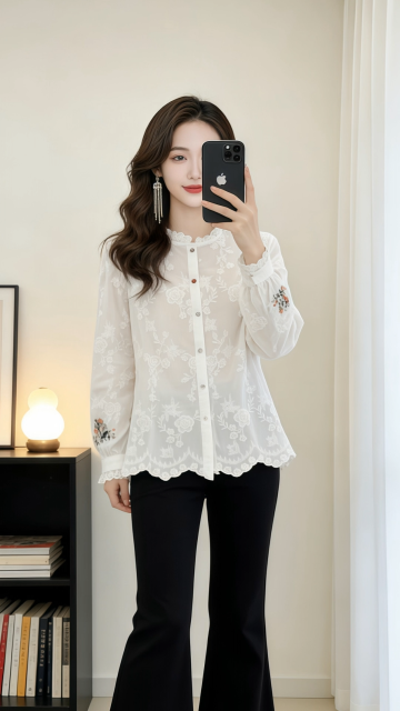优雅柔光下的商务时尚穿搭,柔和色调与面料质感交织,实景空间营造舒适高级感,展现都市女性的从容魅力。