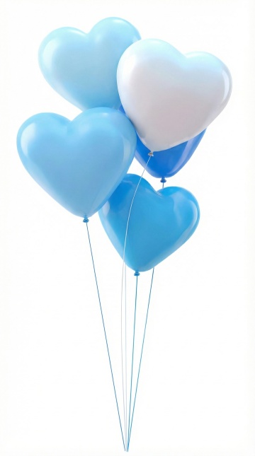 白色背景下,一组由12个大小不一、紧密排列的气球组成的气球束,气球主体颜色改为清新的马卡龙粉与淡蓝色,其中8个为哑光质感的马卡龙粉气球,3个为带有细腻光泽的淡蓝色气球,1个为透明气球并点缀着淡粉色小圆点,所有气球保持圆润饱满的形态,具有柔和的高光和自然的阴影,整体呈现出轻盈、活泼、甜美的氛围,光线从左上方照射,营造出立体感和真实的气球材质感。
