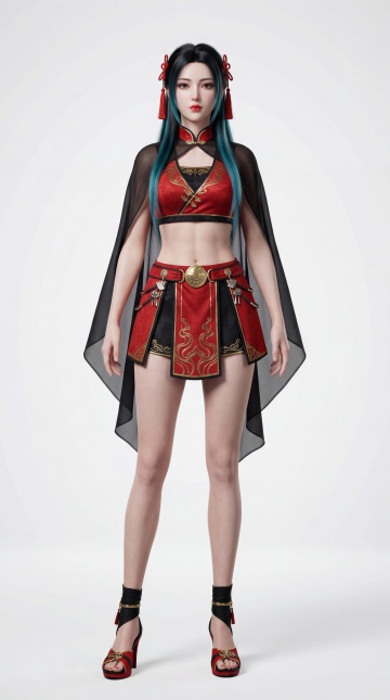 白色背景,敦煌飞天仙女,飘逸的橙红色长裙与蓝色飘带,头戴华丽宝冠,身佩璎珞珠宝,双臂舒展呈舞蹈姿态,面部安详柔和,动态轻盈灵动,采用8K超高清3D渲染,材质表现为半透明丝绸与金属光泽宝石,光影效果为柔和漫反射,立体感强,细节精致,具有现代科技感与传统艺术融合的视觉风格