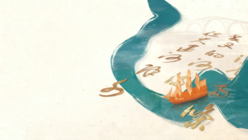清新插画风,卡通海岛场景,破旧渔船与海鸥,营造悠闲夏日氛围。