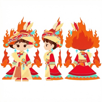 软3D风格的卡通女孩,融合民族元素与可爱设计,色彩斑斓的服饰展现节日氛围,面料质感细腻,充满童趣与文化韵味。