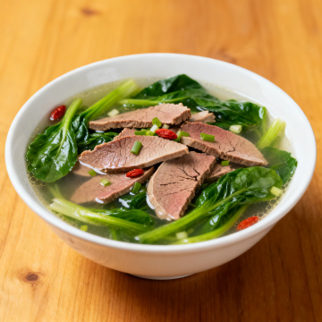 中式暖锅,金属质感锅具盛装热气腾腾的羊骨汤,搭配油润汤汁与液态光影,辅以葱花、辣椒、蒜瓣点缀,实景感十足,传递质朴温馨的冬日食光。