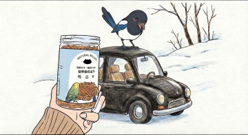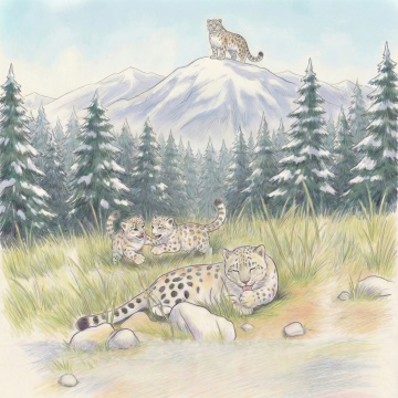 水彩风插画,雪域湖畔静谧唯美,秋林与雪山映衬梦幻清新,鹿影相伴,二人悠行,尽显冬日文艺诗意。