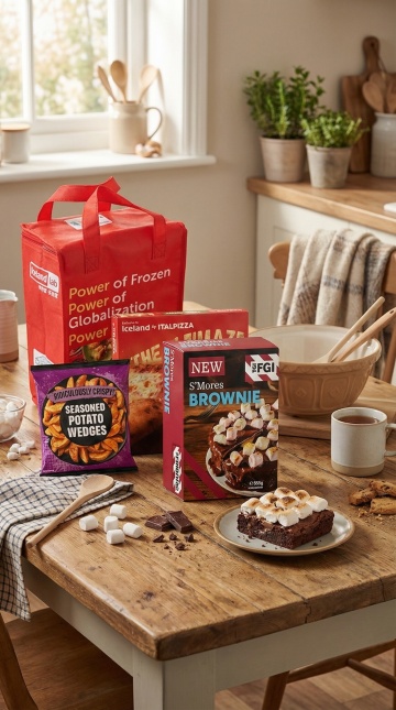 实景感与光影交织,木质餐桌铺陈丰盛零食,质朴温馨中透出清新美食风,3D质感强化细节,重拟物手法还原真实触感。