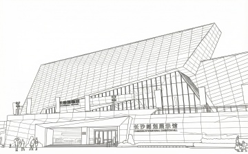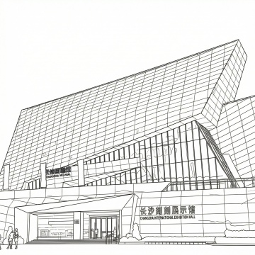 现代感建筑倒映水中,扁平几何设计,简约抽象风格,未来感十足。