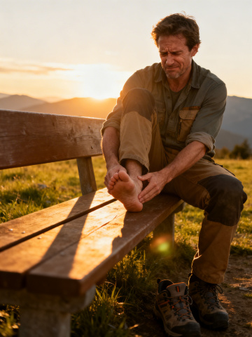 写实摄影风格,晨光下人物运动场景,低角度仰拍视角,人物背向镜头在乡间柏油路上奔跑,穿着深色运动背心与黑色短裤,肌肉线条分明,跑鞋细节清晰,地面有水渍反光,两侧是杂草与灌木丛,天空湛蓝有少量白云,阳光从左后方照射形成金色轮廓光与长阴影,画面充满动感与活力,捕捉运动中的力量与自由感,高清晰度,自然色彩,浅景深突出主体,温暖明亮的氛围。