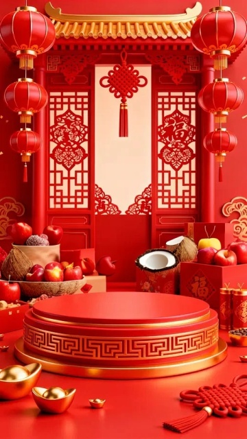 剪纸风与国潮元素融合,以红色为主调,马年主题喜庆热烈,轻拟物手法呈现金元宝、灯笼与烟花,展现浓郁中式民族风情。
