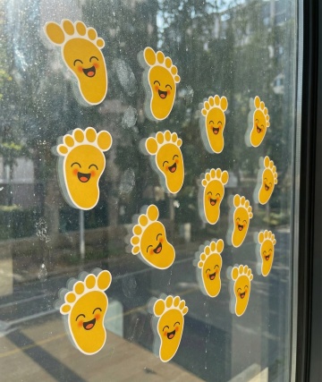 线条简约的足部示意图,以浅蓝、淡紫、米黄三种色块区分不同区域,白色背景,四只脚呈现不同角度的自然摆放姿势,线条清晰流畅,色块边缘平滑规整,无文字及装饰元素,整体风格简洁明了,具有医学或解剖学示意图的精确感。