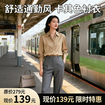 优雅商务风,缎面光泽衬衣搭配垂坠阔腿裤,简约高级,展现时尚质感与易打理特性。