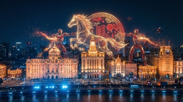 鎏金风与3D微缩艺术结合,呈现上海地标建筑群,融合中式喜庆元素与未来科技感,展现奢华未来都市风貌。
