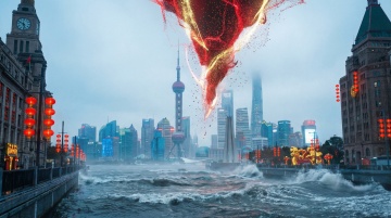 鎏金风与3D微缩艺术结合,展现上海地标在虚拟现实中的奢华未来感,融合中式元素与科技感,梦幻卷轴铺展城市辉煌。