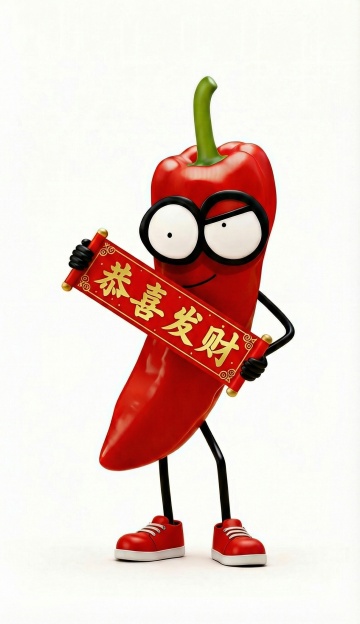 国潮风插画,拟人化马爷穿唐装,卡通手按红包“开”字,喜庆爆竹环绕,寓意新年马上发财。