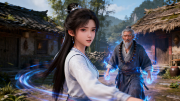 梦幻唯美的3D中式古风场景,鎏金水彩质感服饰,重拟物细节,虚拟现实呈现古典优雅之美。