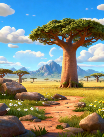 清新插画风,虚拟自然景观,色彩柔和,绿意盎然,仿佛置身梦幻森林。