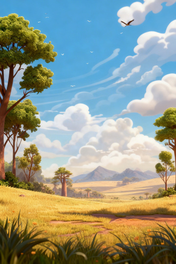 清新水彩插画风,舒适田园景致,绿树成荫,小径通幽,尽显自然之美。