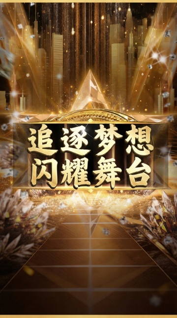 国潮风插画,融合中式建筑与梦幻光影,红月高悬,舞者于鎏金舞台翩跹,水墨云纹铺陈地面,粒子飘渺,营造唯美感与神圣氛围。