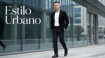 简约主义剪裁,黑色西装展现商务与优雅的极致融合,面料质感细腻,实景光影营造高级时尚氛围。