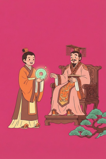 中式淡彩风格,水墨宣染,赭石、花青、杏色为主色调。一位着中式古典,样貌慈祥智慧的夫子,手指远方,对身边的书生谆谆教导;背景有的山水,朝阳,微微探出画面青松,竹子,一旁是弯弯小径,直通上天边。