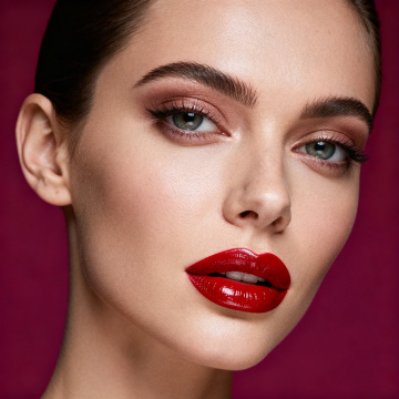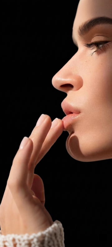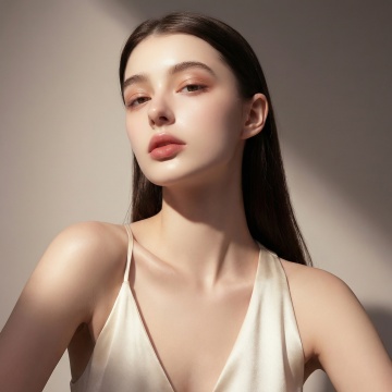 超近特写镜头,聚焦年轻女性的半张面部,细腻展现健康自然的皮肤质感,肌肤呈现出通透的米杏色基调,带有自然的浅棕色雀斑和细微的皮肤纹理,显得真实而有生命力。柔和的自然光从侧上方照射,在眼睑、颧骨和鼻梁处形成细腻的高光,光影过渡自然,立体感强。女性双眼轻闭,长而密的睫毛自然垂下,眉毛呈自然的棕色,形状柔和。唇部微张,唇色为自然的淡粉色,水润饱满。金色的发丝柔软地垂落在脸颊旁,整体氛围宁静、纯净,充满高级感。画面构图简洁,突出皮肤的自然状态和细腻质感,色调温暖柔和,光影运用精妙,展现出皮肤的健康光泽与自然肌理。