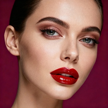 特写镜头下年轻女性灿烂的微笑,面部仅露出鼻子下方至颈部的区域,皮肤呈现光滑细腻的质感,柔和的自然光从上方均匀洒下,形成自然的光影过渡,没有明显阴影。嘴唇饱满,唇色改为温柔的豆沙粉,带有自然的光泽感。牙齿形态调整为整齐排列的贝齿,牙弓弧度自然流畅,门牙大小适中,边缘圆润,整体呈现健康洁白的色泽。背景为纯净的白色,突出主体面部和笑容,整体氛围清新、自然、充满活力,具有高清晰度和写实的人像摄影风格。