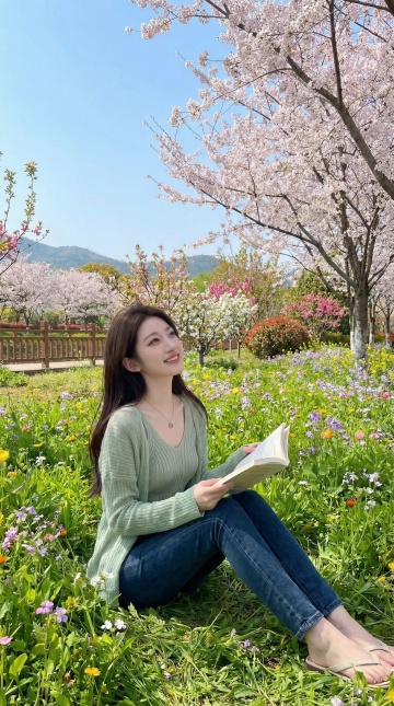 樱花树下,少女手捧漫画