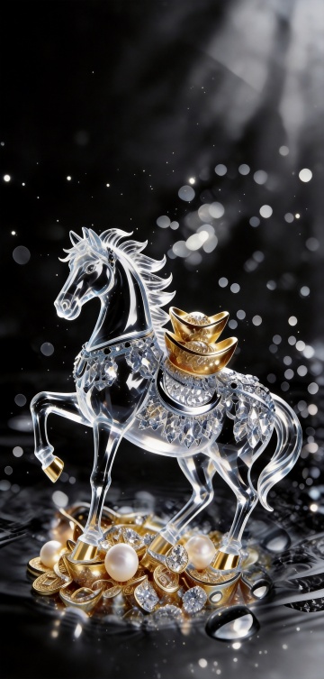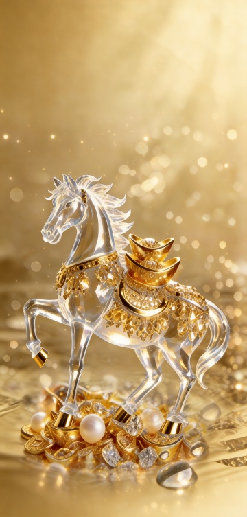 梦幻感与清透感交织的3D玻璃风白马,重拟物设计展现优雅姿态,光影流转如虹彩般绚丽,尽显节日华美氛围。