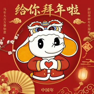国潮风剪纸质感,拟人化柯基穿唐装抱“福”字,红金配色喜庆浓郁,浮雕式灯笼与红包点缀,中式年味十足。