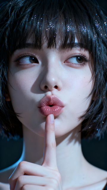 超写实人像摄影,柔和自然光从左上方照射,形成细腻的明暗过渡和柔和阴影,浅米色背景,女性侧脸特写,精致五官,闭着双眼,唇色为自然裸粉色,面部点缀银色小亮片、立体粉色花瓣和白色小花装饰,发丝优雅盘起,耳边垂落粉色花瓣装饰;手部轻托下巴,全新美甲设计采用深邃酒红色渐变底色,指尖镶嵌不规则切割的黑色水钻与银色金属链条装饰,搭配哑光质感黑色蝴蝶结立体甲片;整体妆造变换为冷艳暗黑系风格,眼妆以深棕与墨黑色眼影晕染出深邃烟熏效果,眼尾点缀细小黑色羽毛,唇妆改为哑光正红色,面部保留少量银色亮片但增加黑色小珍珠点缀,营造神秘优雅的暗黑氛围,画面保持高清细腻的皮肤质感和柔和的光影层次,色彩对比增强,突出冷艳与精致的视觉冲击。