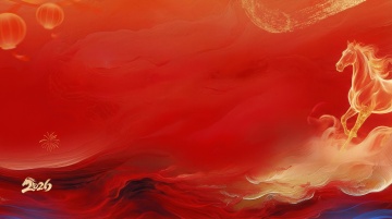 喜庆红金配色,3D大字“2026”鎏金边框,浮雕祥云环绕,烟花绽放,中式年味浓厚,新春贺岁氛围十足。