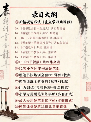 竖版三折页设计,整体采用水墨灰与宣纸白为主色调,营造儒雅、沉静、书卷气的氛围。页面布局采用云纹分隔的三栏式设计,图文交错,视觉层次如山水画卷般展开。包含工笔画风格的文房四宝插图(毛笔、宣纸、砚台、镇纸)、古籍书页特写、书法课堂的温馨实景照片,以及烫金工艺呈现的"笔墨传薪火"、"字如其人,书为心画"等标题文字。文字排版选用方正清刻本悦宋简体与少量楷体相结合,字号大小如书法作品般有枯润变化,行距疏朗有致,文本块以古籍批注式布局呈现,突出"一手好字,终身受益"、"名师亲授"、"三阶进阶课程"等核心信息。整体设计风格古朴而不失灵动,笔墨韵味与现代设计语言交融,传达出传统书法文化的雅致风骨与修身养性的教育理念。