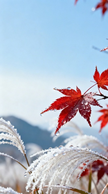 水墨风插画,秋山雾绕,金叶映水,静谧朦胧,中式意境深远,如诗如画。