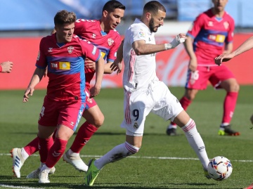 写实风格,高清摄影,特写镜头,一个黑白相间的足球置于前景的绿色足球场上,草叶纹理清晰可见,草尖带有露珠反光,背景是大型圆形露天足球场,观众席坐满观众,球员们在场地中模糊跑动,身着红色球衣,阳光明媚,天空湛蓝,带有少量白云,体育场灯光亮起,光线从斜上方照射,足球表面有高光和阴影,整体氛围充满活力与竞技感,画面层次分明,色彩鲜艳,细节丰富,具有强烈的临场感和真实质感。