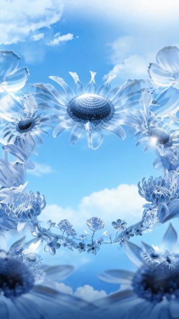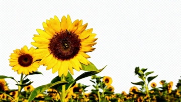 3D风与重拟物结合,阳光下的向日葵花海光影斑驳,蜜蜂飞舞,呈现自然清新与唯美的视觉盛宴。