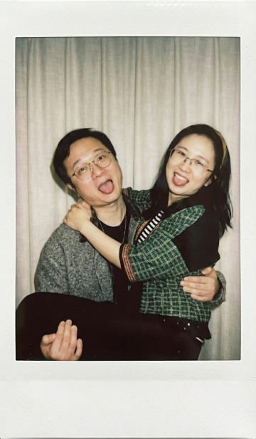 胶片风实景拍摄,少女与萌犬互动温馨可爱,柔和色调传递舒适感,Canon贴纸增添趣味细节。