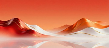 以红色为主色调的抽象背景,画面中充满了流动感的波浪形态,波浪从底部向上延伸,呈现出自然的曲线和渐变过渡,整体风格为现代简约的数字艺术,光影柔和,高光处呈现出明亮的橙黄色,阴影处则为深沉的红色,营造出温暖而富有动感的氛围,波浪边缘光滑细腻,具有丝绸般的光滑质感,背景为渐变的橙红色,从底部的深红色逐渐过渡到顶部的浅橙色,整个画面简洁而富有视觉冲击力,没有任何文字和装饰元素。
